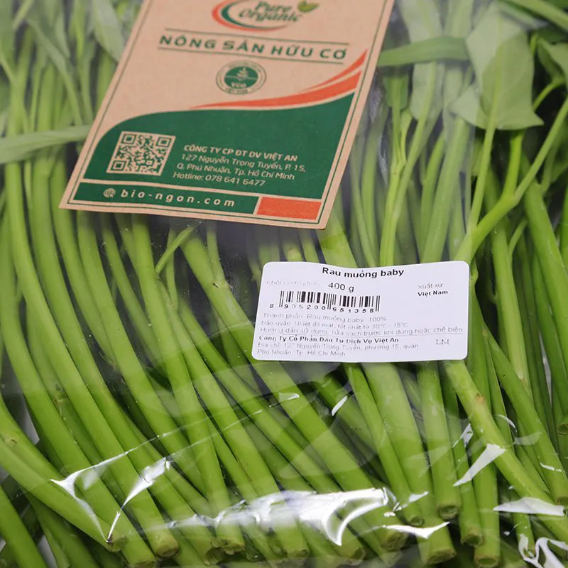 - Rau muống baby là loại rau có thân non, thường có kích thước nhỏ, thân và lá mềm, ăn rất giòn và ngọt.