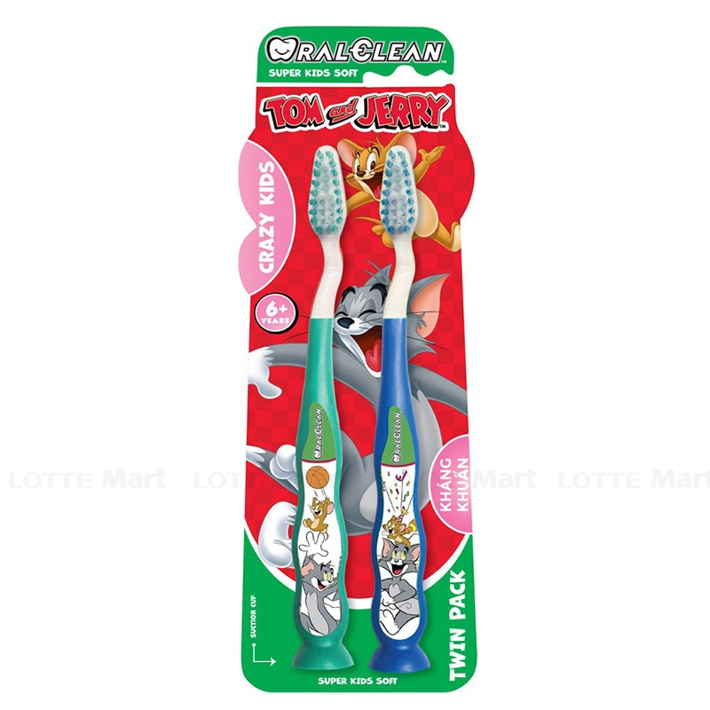 - Sản phẩm có thiết kế ngộ nghĩnh, đáng yêu với họa tiết hoạt hình Tom&Jerry ở thân bàn chải, tạo cảm giác yêu thích và hào hứng chải răng ở trẻ.