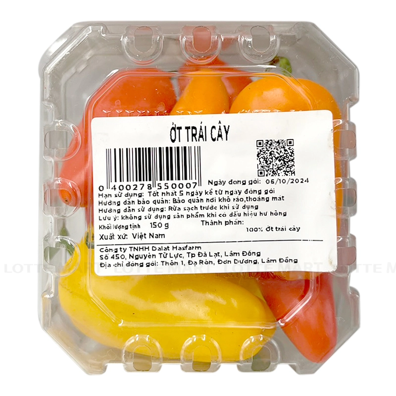 Ớt trái cây Hasfarm Green+ 150g là một loại ớt mới có vị trái cây, giòn, ngọt không có vị hăng giống như các loại ớt khác nên khá dễ ăn thích hợp cho các món xào, ăn sống. Đặc biệt hơn, loại ớt này không chỉ được người lớn ưa chuộng mà còn có thể sử dụng để chế biến thành các món ăn ưa thích cho bé.