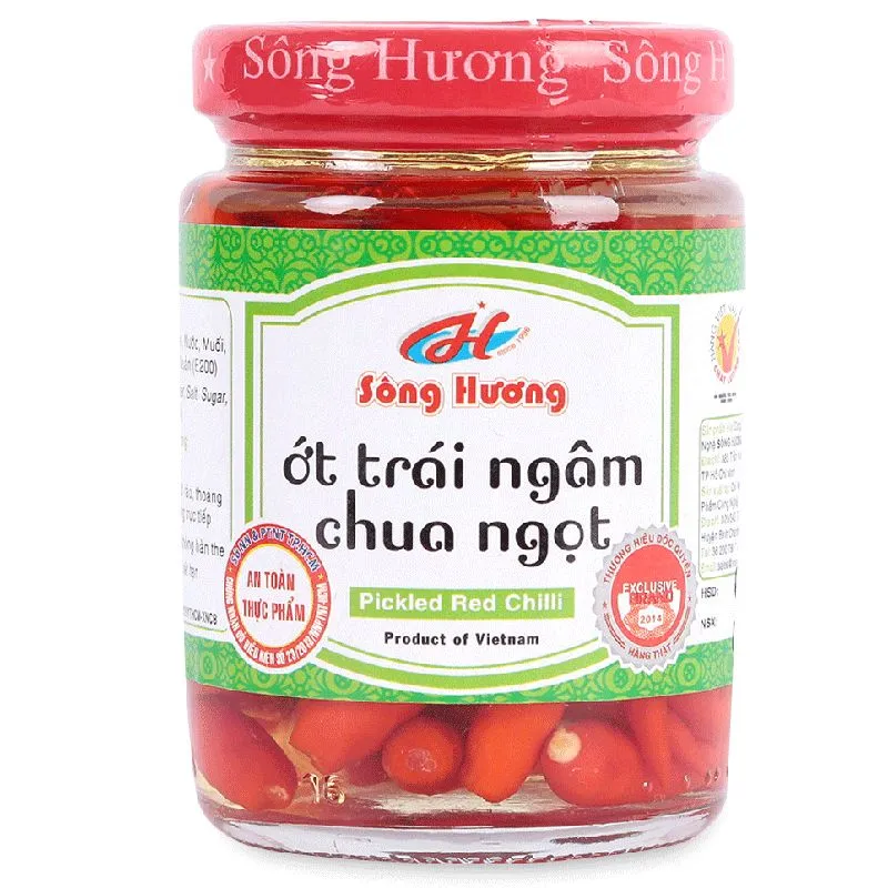 Ớt Trái Ngâm Chua Ngọt Sông Hương được chế biến từ những trái ớt tươi chọn lọc kết hợp với các loại gia vị đặc trưng tạo ra hương vị truyền thống thơm ngon.