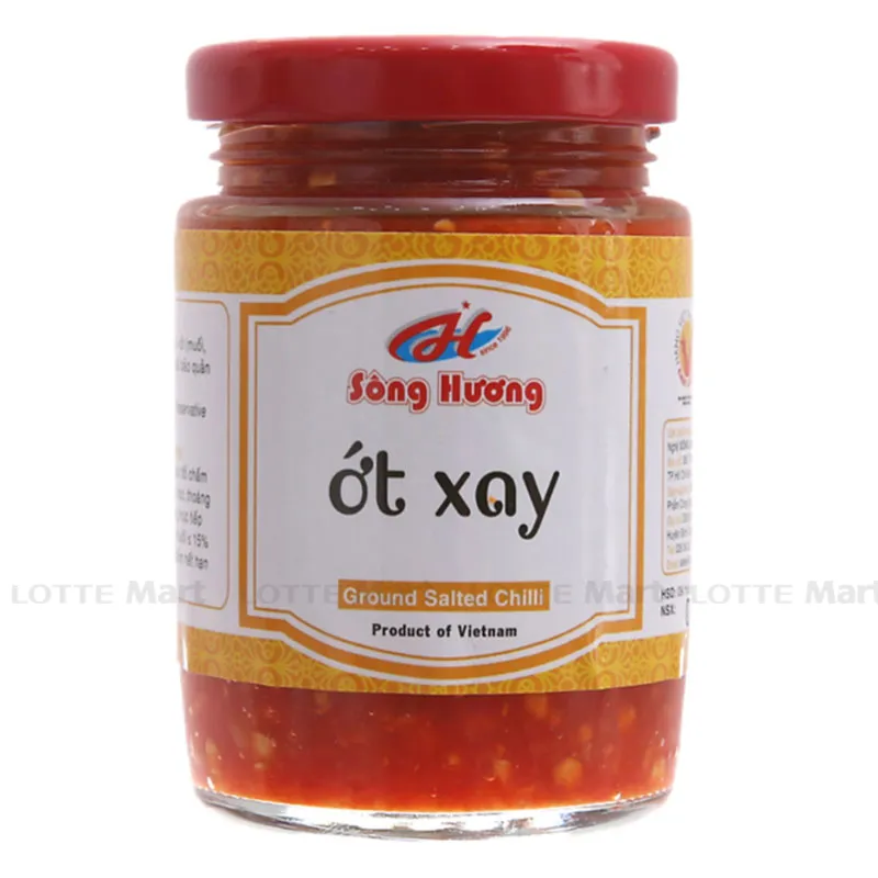 Ớt Tươi Xay Sông Hương được làm từ những quả ớt đỏ tươi ngon nhất. Sản phẩm có vị cay thơm của ớt tươi cùng vị tỏi và muối thêm đậm đà và hấp dẫn.