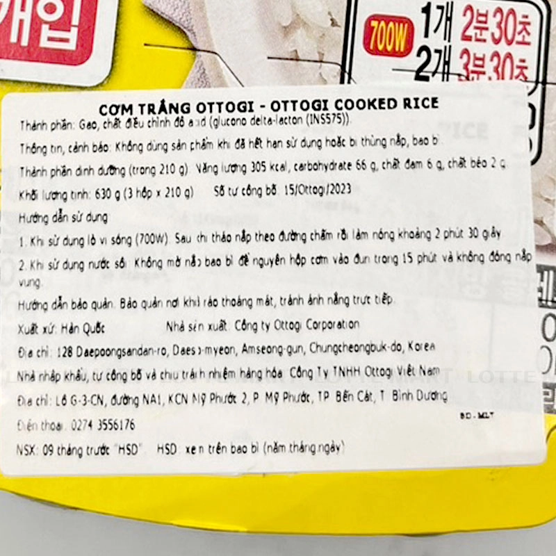 - Cơm Trắng Ăn Liền Ottogi được chế biến từ những hạt gạo thơm ngon, hảo hạng của Hàn Quốc, đem lại cho bạn một bát cơm trắng nhanh chóng với hương vị thơm ngọt, dẻo mềm như cơm nấu tại nhà.