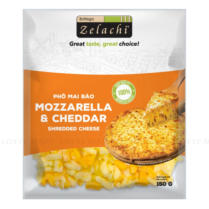 - Phô Mai Bào Mozzarella Và Cheddar Bottega Zelachi là sự kết hợp hoàn hảo giữa hai dòng phô mai nổi tiếng thế giới - Mozzarella mềm dẻo, thơm nhẹ và Cheddar đậm đà, béo ngậy.