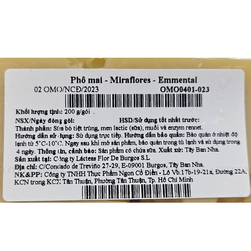 - Phô Mai Emmental Miraflores là dòng phô mai nổi tiếng với hương vị dịu nhẹ, thơm béo và những lỗ khí tròn đặc trưng hình thành trong quá trình ủ chín tự nhiên.