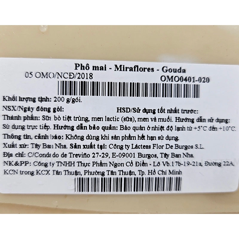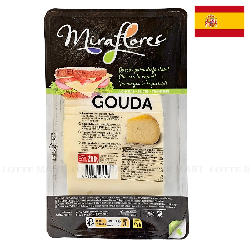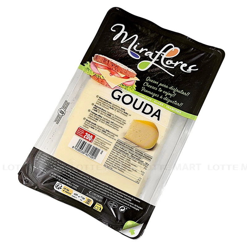- Phô Mai Gouda Miraflores là phô mai mềm mịn, không quá cứng, có vị béo nhẹ và hương thơm đặc trưng từ sữa bò.