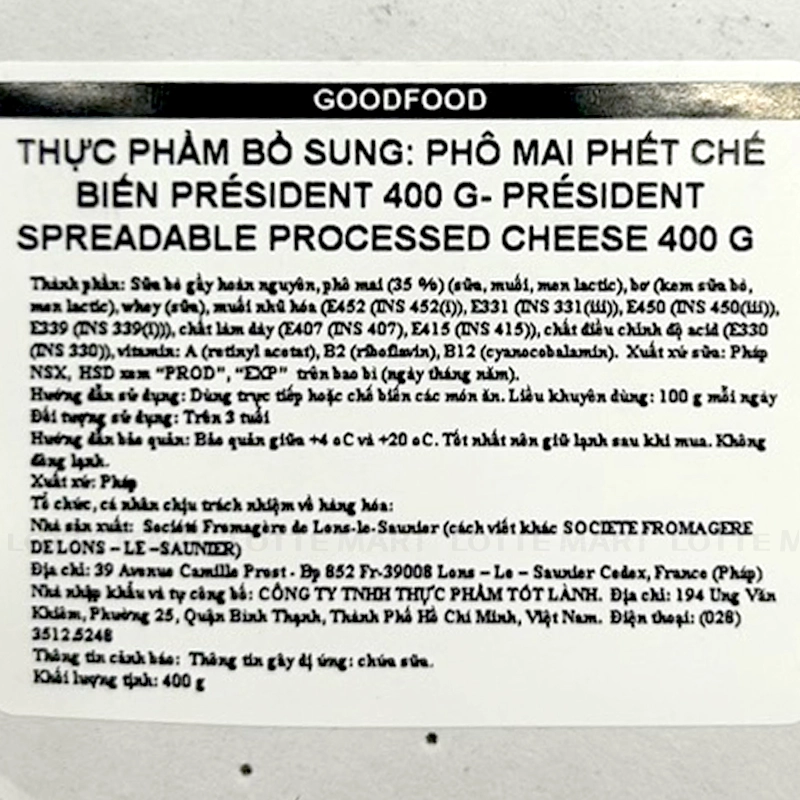 - Phô Mai Phết Chế Biến President với quy trình sản xuất hiện đại từ Pháp, có công thức chế biến tiên tiến, sản phẩm này không chỉ đảm bảo về chất lượng mà còn an toàn cho sức khỏe người tiêu dùng.