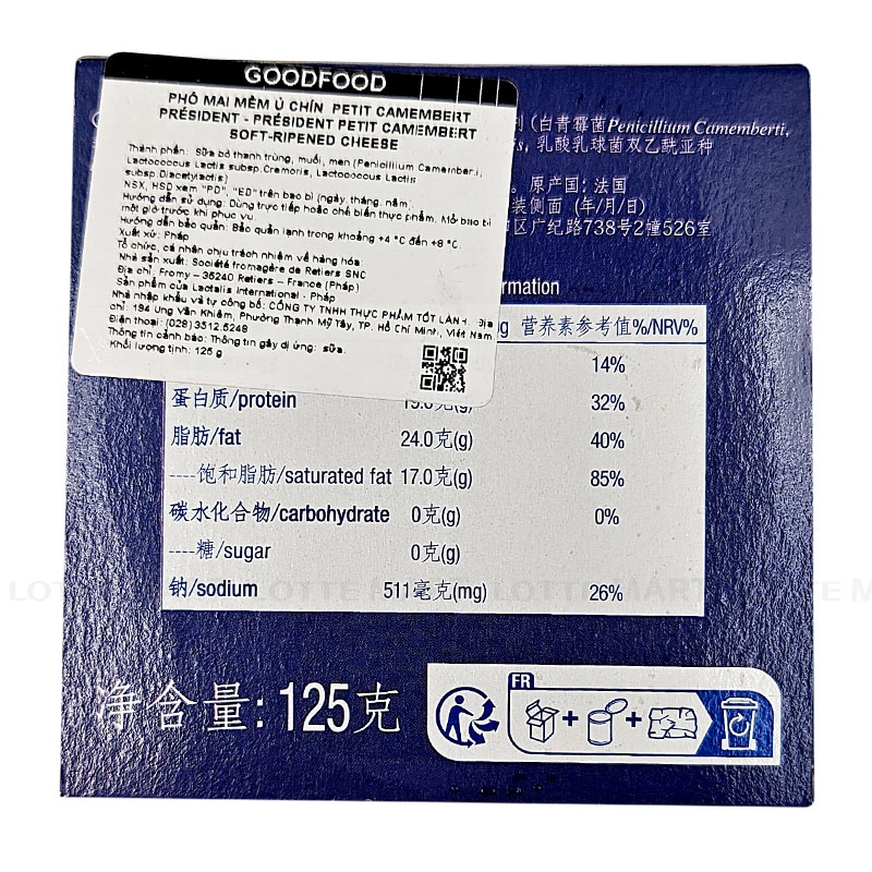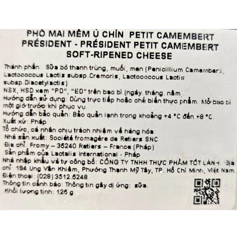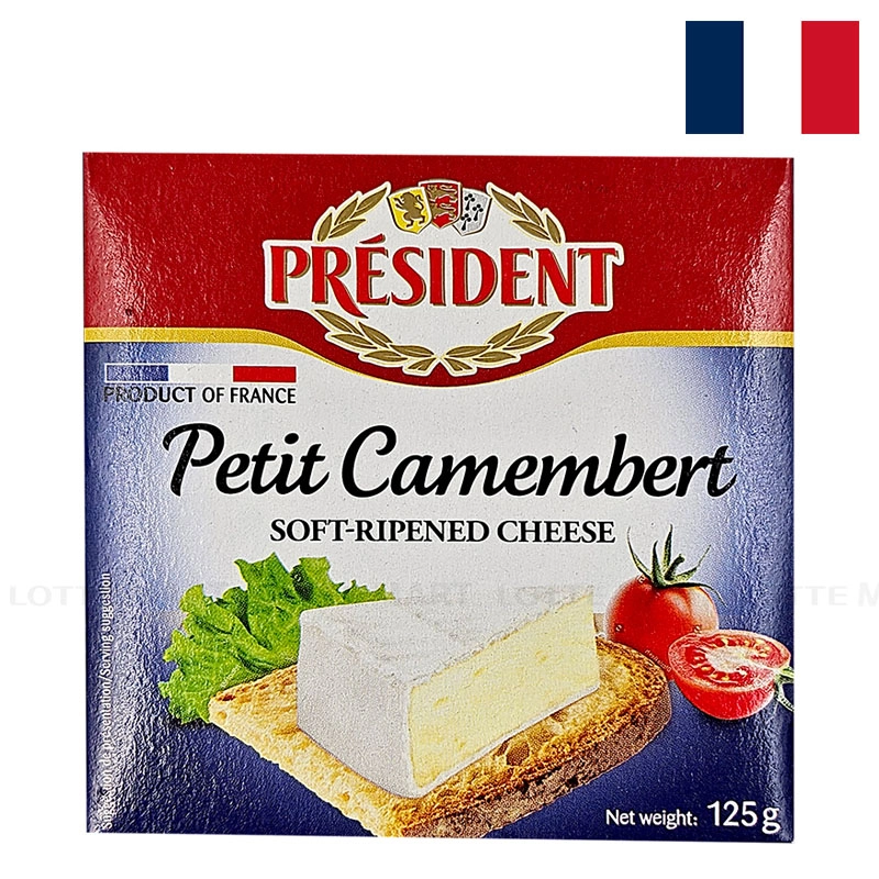 - Phô Mai Petit Camembert President là một loại phô mai mềm ủ chín làm từ sữa bò tươi lấy từ các vùng đồng quê nước Pháp.