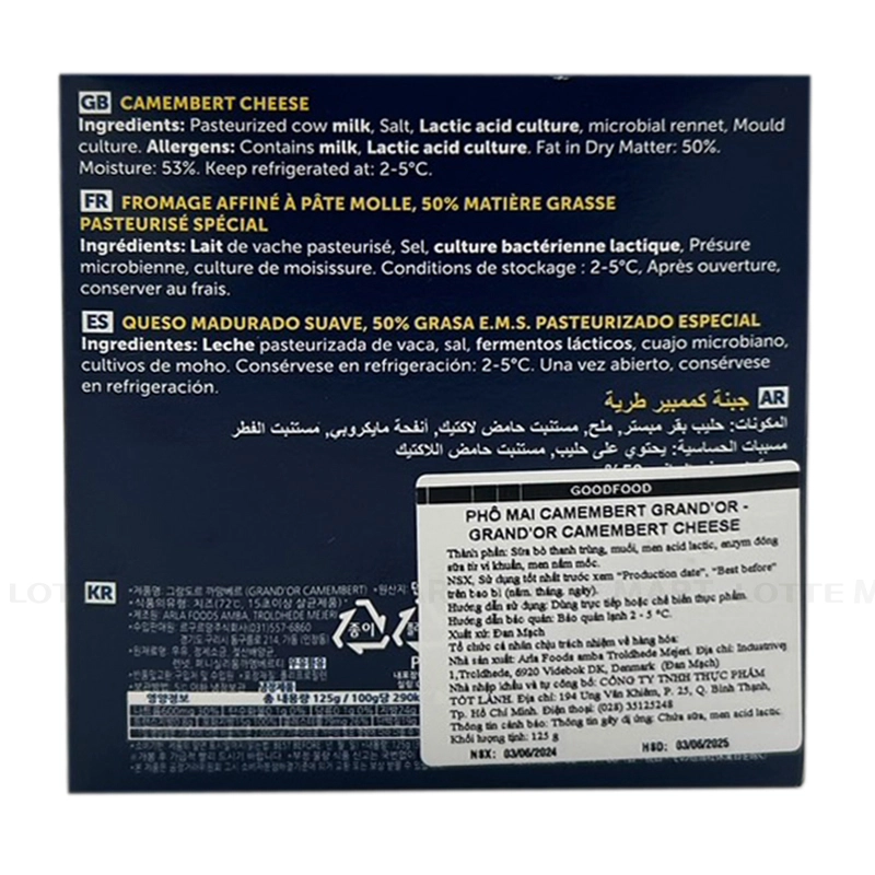 - Phô Mai Grand'Or Camembert có độ mềm vừa phải, hương béo thơm và vị mặn đặc trưng. Bạn có thể dùng trực tiếp với bánh mì, trái cây hoặc làm nguyên liệu trong các món bánh.