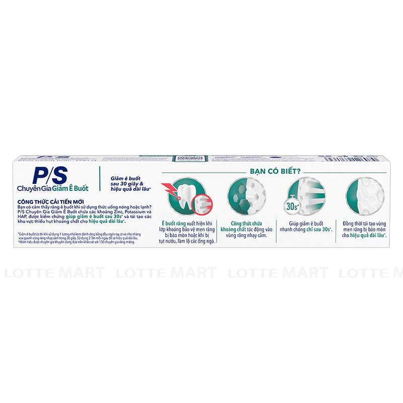 - Kem Đánh Răng P/S Giảm Ê Buốt Và Trắng Răng giúp làm dịu cơn ê buốt sau 30 giây để bạn thoải mái tận hưởng các món ăn yêu thích. Tác động từ khoáng (HAP, K, Zn) giúp mang lại hiệu quả tức thì, lâu dài và tự nhiên ngoài ra còn tăng cường trắng răng: