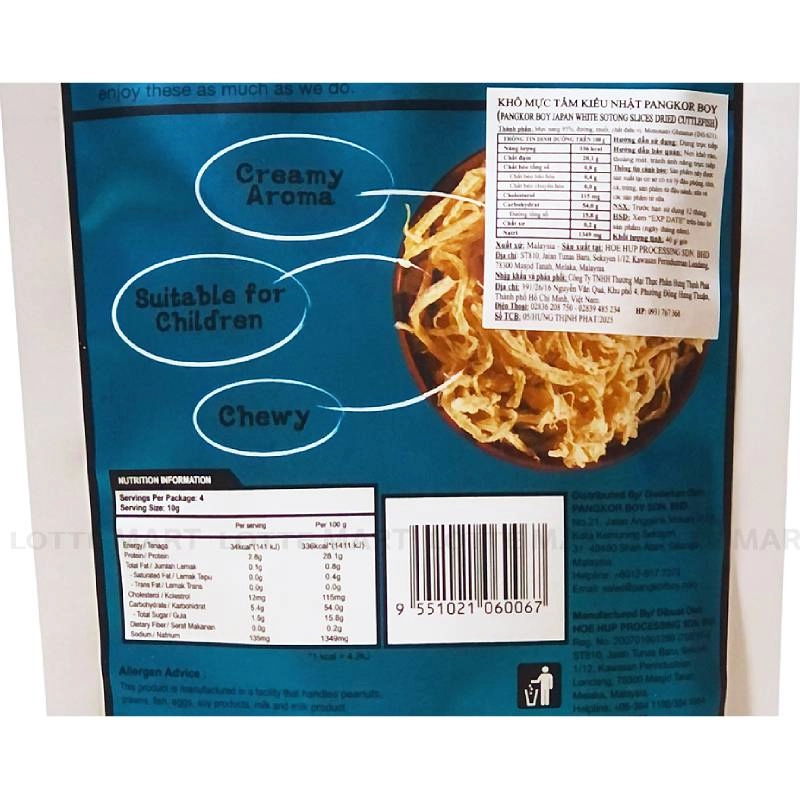 Khô Mực Pangkor Boy Vị Nhật là sản phẩm đến từ Malaysia, được làm từ mực nang thật (Real Cuttlefish), mang đến sản phẩm chất lượng với hương vị mực thật.