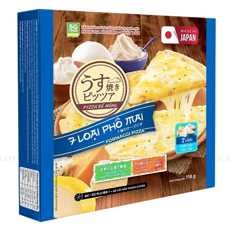 Pizza SG Food Bảy Loại Phô Mai là sản phẩm được sản xuất tại nhà máy Maruha Nichiro - Nhật Bản. Sản phẩm là sự kết hợp của nguyên liệu chọn lọc kĩ càng cùng công nghệ chế biến hiện đại, đảm bảo chất lượng nhập khẩu cao cấp với các hương vị được yêu thích mang lại trải nghiệm cao cấp khi bạn thưởng thức pizza ngay tại nhà.
