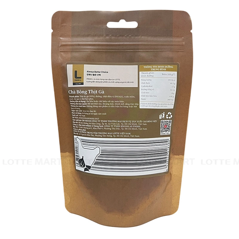 Chà Bông Gà Prime L được chế biến từ những phần thịt gà tươi ngon, vẫn giữ trọn vị ngọt thanh của thịt.