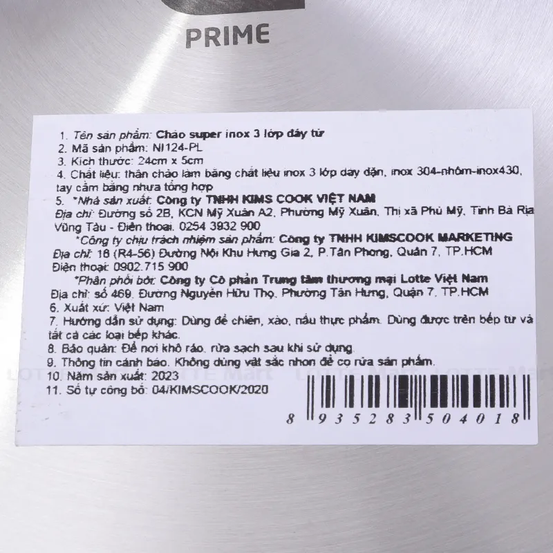 Chảo Super Inox 3 Lớp Đáy Từ Choice L Prime 24cm