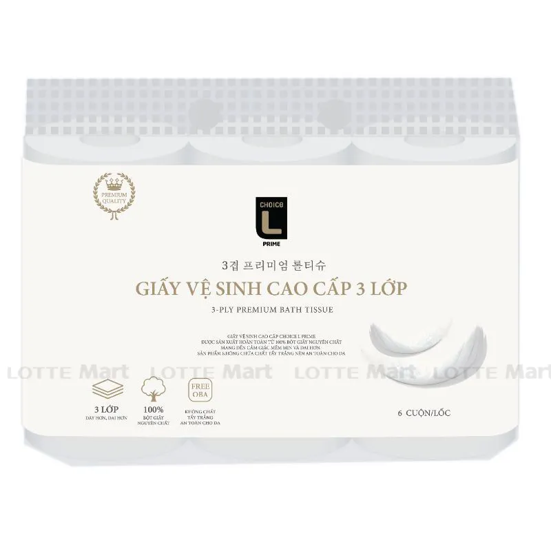 Giấy Vệ Sinh Choice L Prime Cao Cấp 3 Lớp Lốc 6 Cuộn