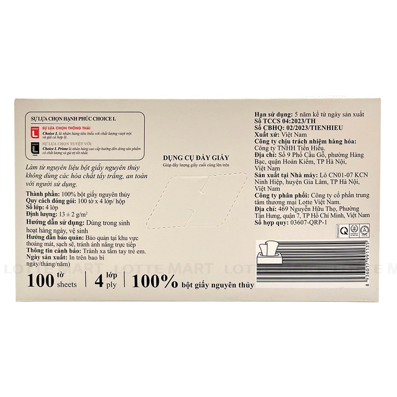 Khăn Giấy Lụa Cao Cấp Choice L 4 Lớp Hộp 100 Tờ