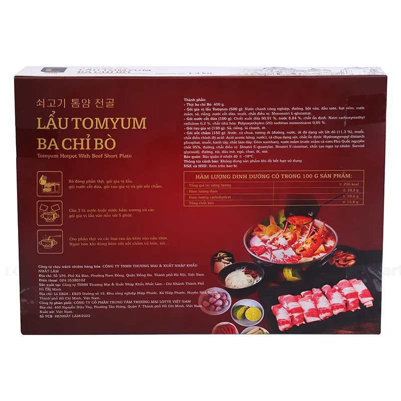 Lẩu Tomyum Ba Chỉ Bò Choice L Hộp 1.3kg là sản phẩm mang đến hương vị lẩu Tomyum một cách trọn vẹn bởi phần nước dùng hoàn hảo cùng ba chỉ bò mềm ngon, hấp dẫn. Ngoài ra sản phẩm còn có các đặc điểm nổi bật như:
