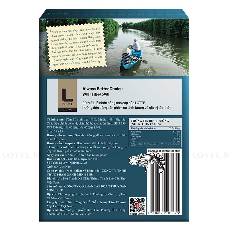 Tôm Sú Sinh Thái Xẻ Lưng Prime L là sản phẩm tôm được nuôi tự nhiên, không chứa kháng sinh và không hóa chất trong cánh rừng ngập mặn nguyên sinh tại Cà Mau.