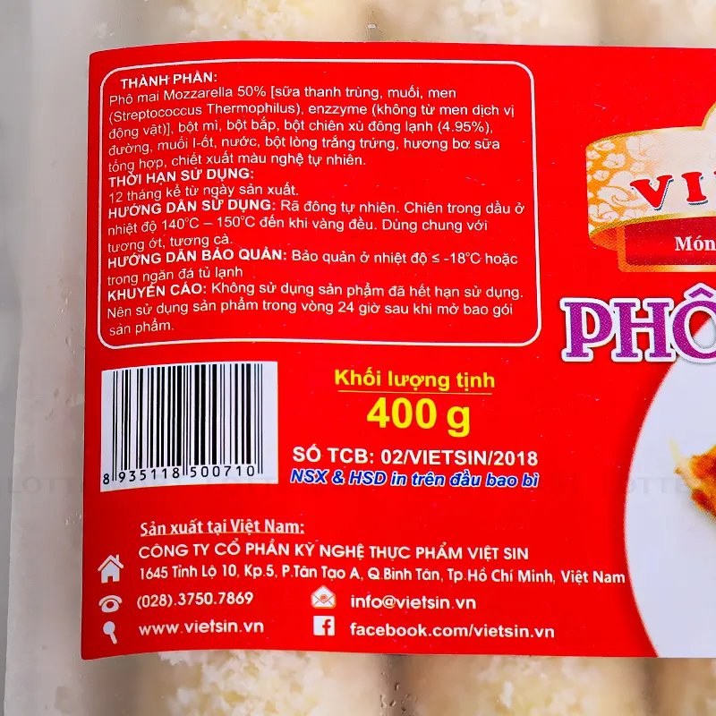 Phô Mai Que Việt Sin 400G với lớp vỏ giòn rụm, không ngấm dầu khi chiên, cùng vị phô mai sữa đặc trưng, thơm ngon hấp dẫn.