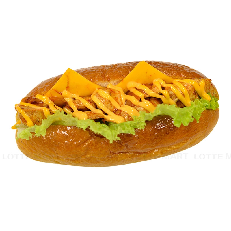 Bánh Mì Gà BBQ Phô Mai với phần nhân thịt gà được nướng vàng, thấm nước sốt BBQ mặn ngọt đặc trưng.