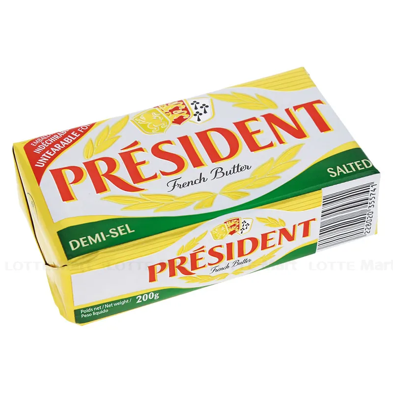 - Bơ Mặn 80% Béo President gói 200g là sản phẩm cao cấp có xuất xứ từ Pháp, mang hương thơm nhẹ nhàng đặc trưng, béo ngậy, vị ngọt dịu không quá gắt có thể ăn trực tiếp hoặc dùng để làm các loại pastries ngọt, làm các loại bánh và phết lên bánh mì sẽ tạo nên món ăn ngon khó cưỡng.