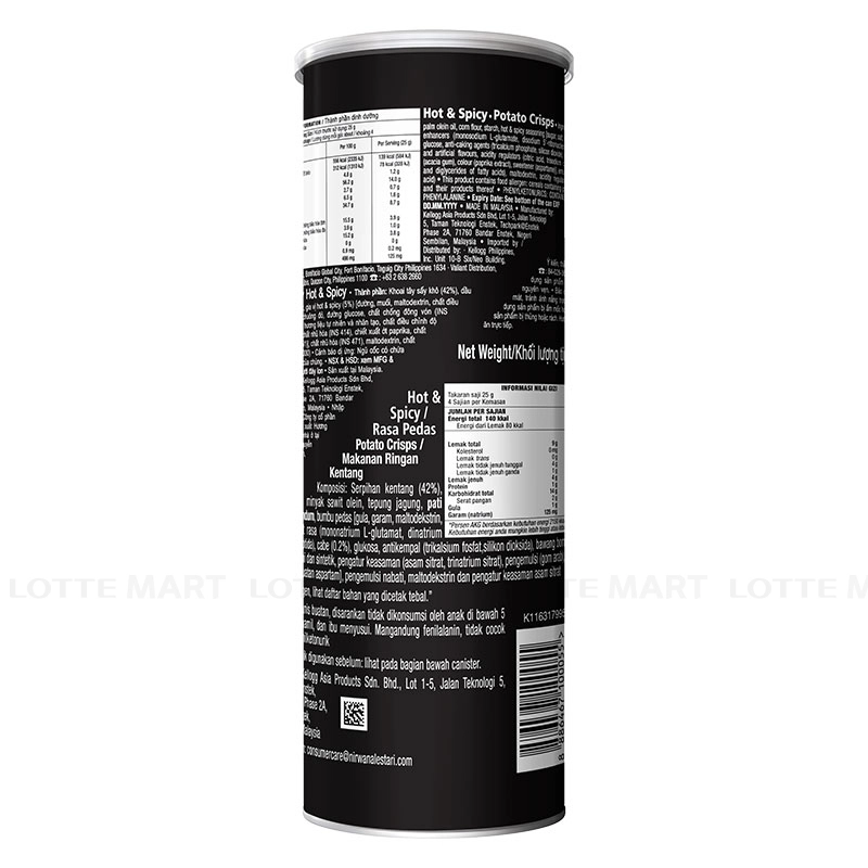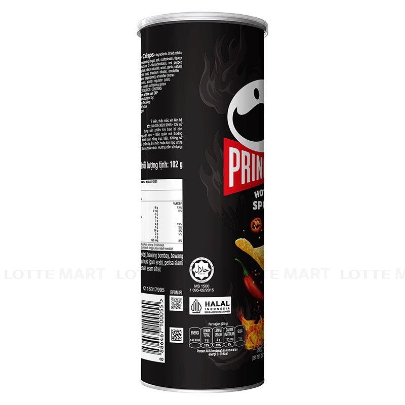 - Snack Khoai Tây Pringles Hot & Spicy với thành phần khoai tây và tinh bột mỳ chứa nhiều dưỡng chất giúp bạn bổ sung năng lượng cần thiết cho cơ thể, là món ăn vặt lý tưởng cho các buổi tụ tập hoặc đơn giản là những buổi thư giãn, giải trí.