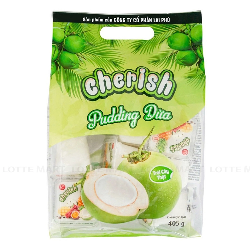 - Pudding Dừa Cherish mang trong mình vị ngọt thanh mát của dừa tươi, vẻ ngoài óng ánh và đặc biệt mềm mịn dễ ăn, là lựa chọn nổi bật cho cả nhà sử dụng.