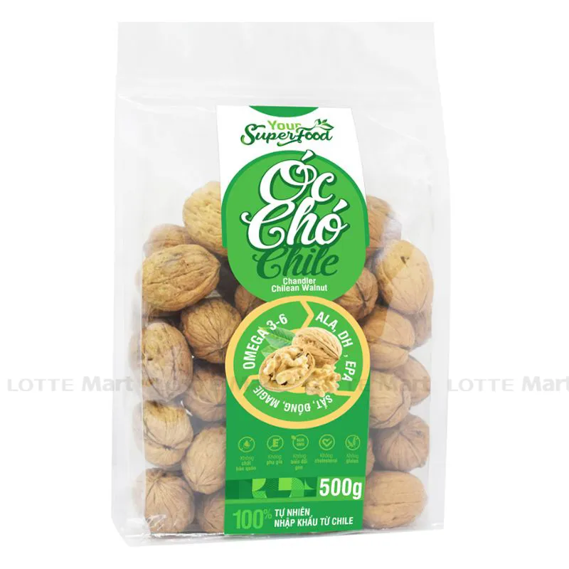 Quả óc chó Chile 500g có thành phần 100% tự nhiên được nhập khẩu từ Chile, sản phẩm không chứa chất bảo quản, không chất phụ gia, được thiết kế túi đơn giản, tiện dụng.