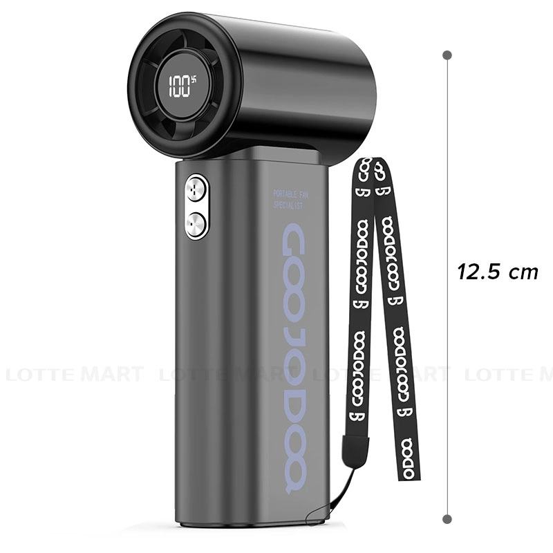 - Quạt Cầm Tay GOOJODOQ GFS007 với màu đen cá tính là thiết bị làm mát cá nhân với thiết kế nhỏ gọn, dễ mang theo và phù hợp sử dụng trong nhiều tình huống như làm việc, học tập hoặc di chuyển ngoài trời. Kích thước nhỏ giúp sản phẩm dễ dàng bỏ vào túi xách, balo mà không chiếm nhiều diện tích.