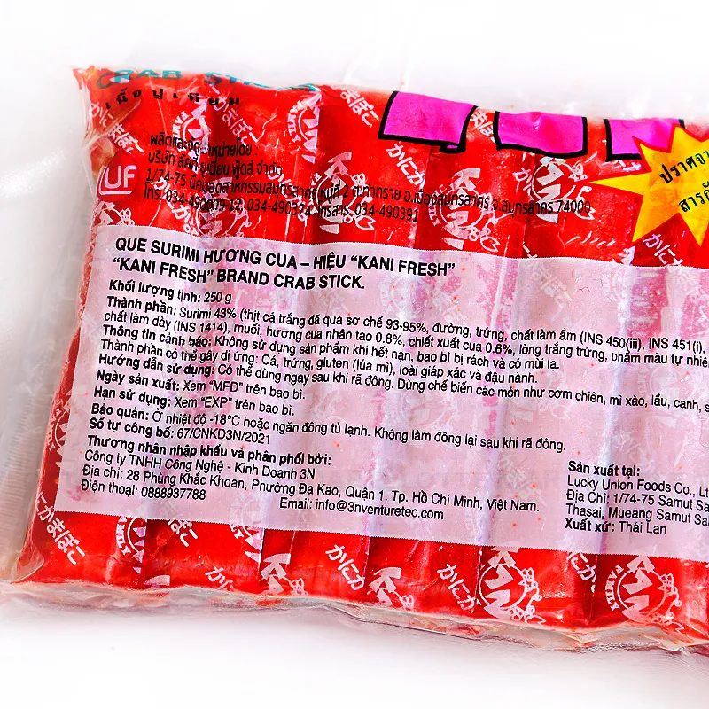 Que Surimi Hương Cua Kani là sản phẩm chất lượng cao của Thái Lan. Sản phẩm được sản xuất theo công nghệ hiện đại, mọi khâu từ tuyển chọn nguyên liệu tới chế biến, đóng gói đều diễn ra khép kín dưới sự giám sát và kiểm tra nghiêm ngặt để đem đến chất lượng sản phẩm cho người tiêu dùng.