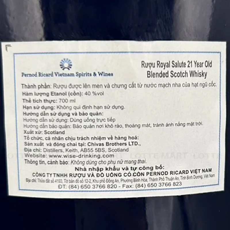 Rượu Blended Whisky Chivas Royal Salute 40% ABV Chai 700ml