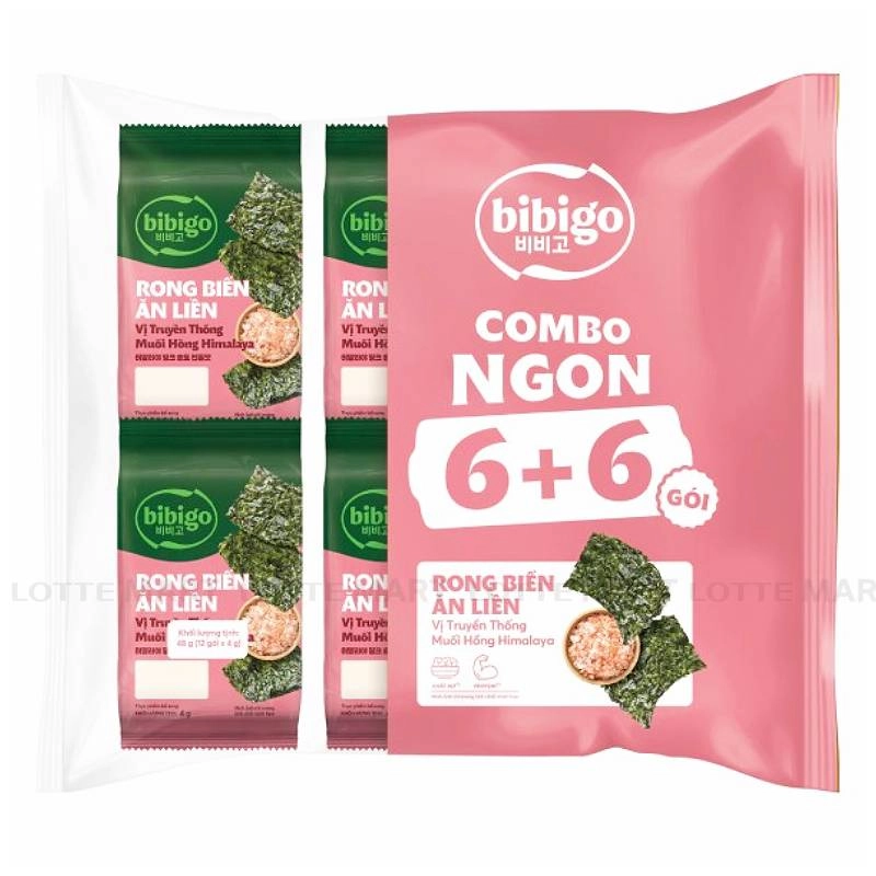 Lốc 12 Gói Rong Biển bibigo Vị Muối Hồng 4G