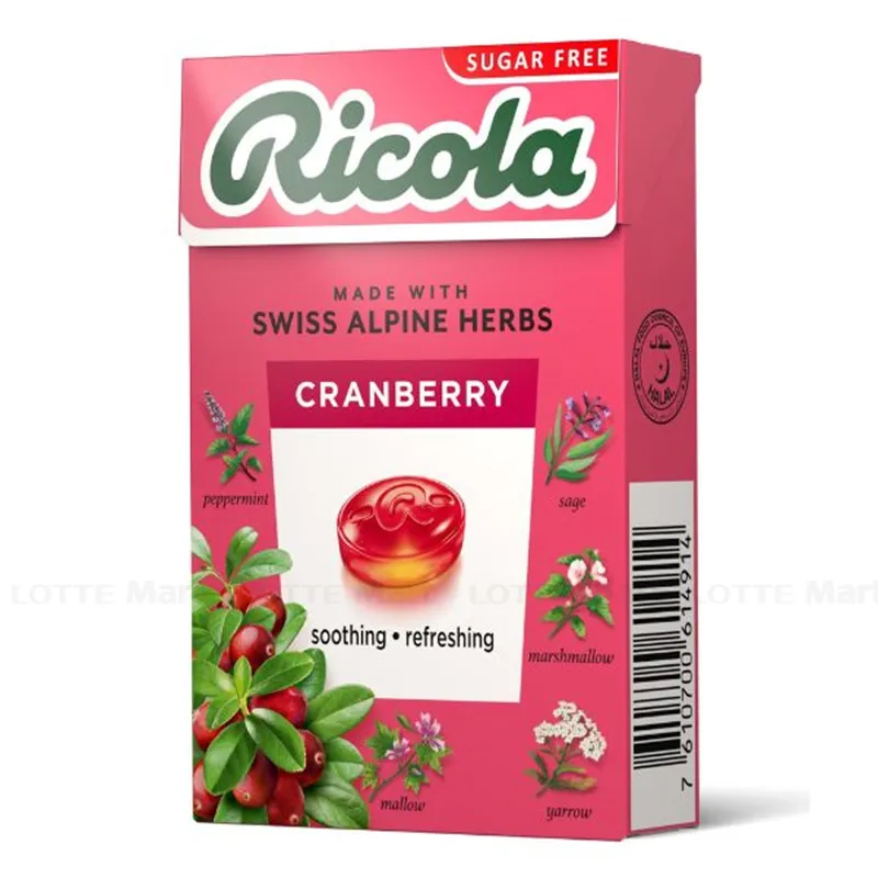 Trong mỗi viên Kẹo Ricola Cranberry là một công thức bí mật do ngài Emil Richterich phát minh ra từ 13 loại thảo dược quý được trồng tại vùng núi cao của Thụy Sỹ. Các loại thảo dược này được sử dụng tại nhiều nơi trên thế giới và có tác dụng chủ yếu là giúp làm dịu những triệu chứng gây khó chịu như đau họng, cảm, ho và nghẹt mũi,...