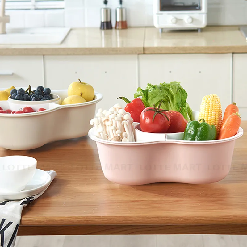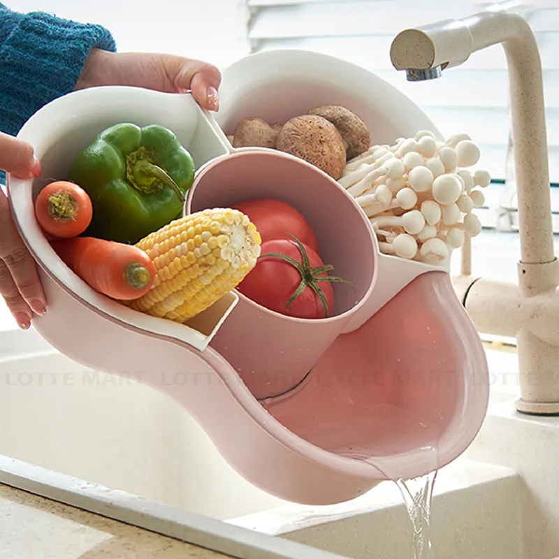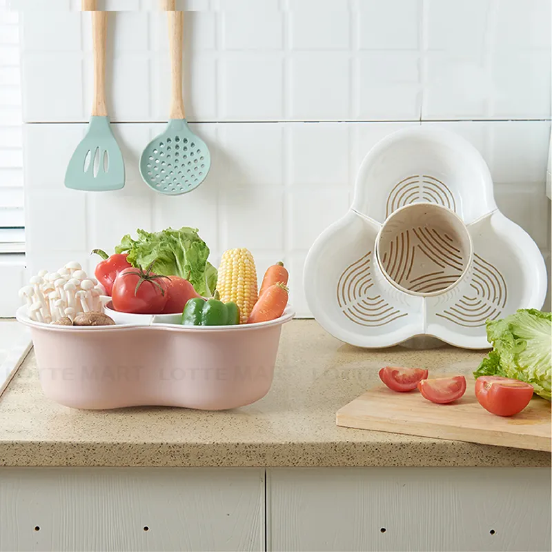 - Kèm theo bên rổ Super Chef là thau vừa vặn giúp tránh nước còn đọng khi rửa rau củ quả chảy ra bàn.
