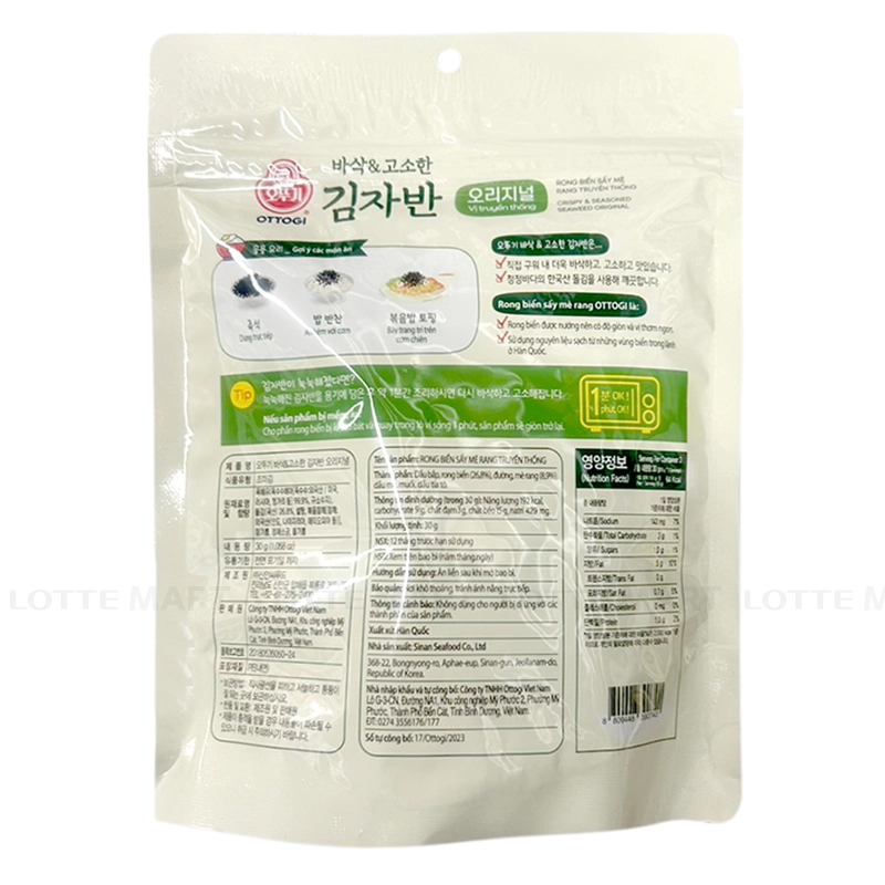 Rong Biển Sấy Mè Rang Truyền Thống Ottogi có vị thơm của rong biển hòa quyện với mè rang truyền thống, tạo vị ngon khi trộn ăn kèm với cơm. Đặc biệt tốt cho người ăn kiêng, tiểu đường, tốt cho tim mạch, não bộ, làm chậm quá trình lão hóa.