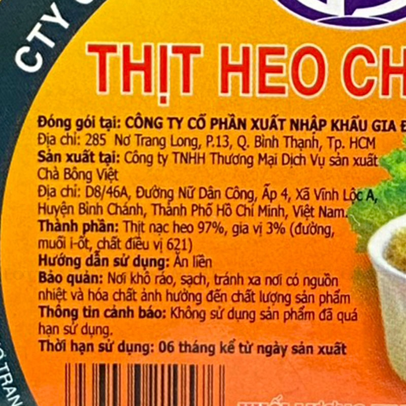 Thành phần: Thịt nạc heo, đường, muối...