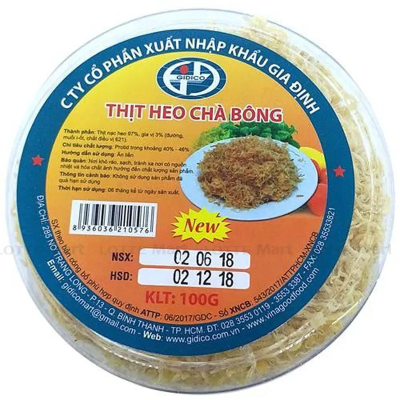 Chà Bông heo Gia Định được làm từ thịt heo tươi ngon nổi tiếng của vùng đất Sài Gòn, sợi chà bông dai dai, thơm ngon, mặn mà, đảm bảo sẽ là món ăn vặt hoặc món ăn kèm khoái khẩu cho gia đình bạn.