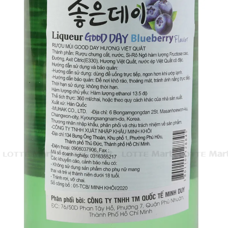 Rượu Soju Good Day Vị Việt Quất 13.5% Vol Chai 360ml