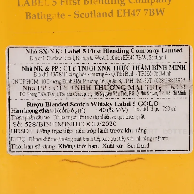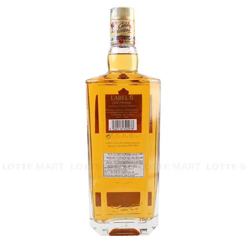 - Rượu Whisky Label 5 Heritage 40% ABV Chai 750ml là sản phẩm của thương hiệu Scotch whisky pha trộn của tập đoàn sản xuất rượu mạnh của Pháp – La Martiniquaise mang đến hương vị phong phú và cân bằng.