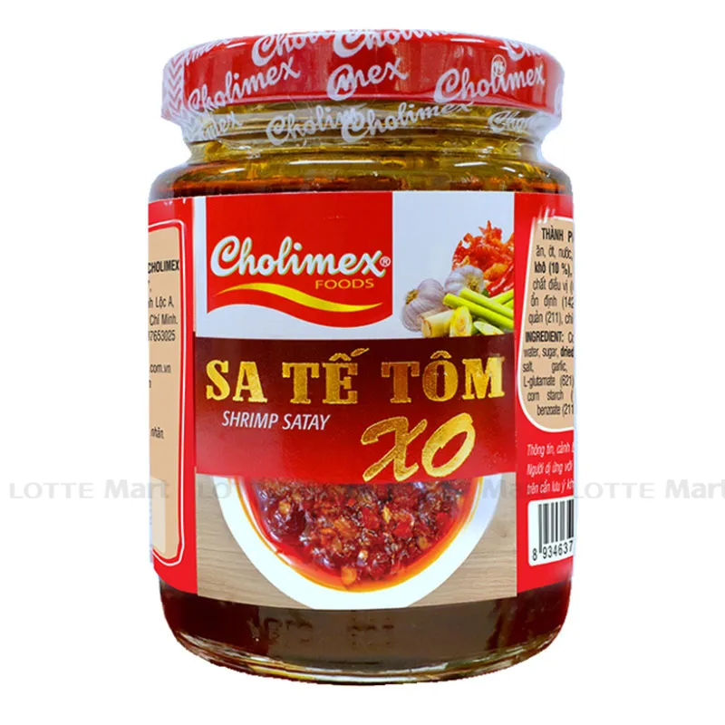 Sa Tế Tôm Cholimex được làm từ đậu nành chọn lọc, không chưa chất bảo quản, mang đến vị thơm ngon, hấp dẫn cho các bữa ăn trong gia đình, đảm bảo an toàn cho sức khỏe. Thành phần: Dầu ăn, Ớt, Đường, Tôm khô, Tỏi, Sả, Muối ăn. Công dụng: Làm gia vị nêm nếm cho các món phở, lẩu Thái, bún bò Huế. Bảo quản ở nơi khô thoáng, tránh ánh nắng trực tiếp.