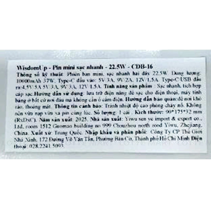 Pin Mini Sạc Nhanh WisdomUp 22.5W CDB-16