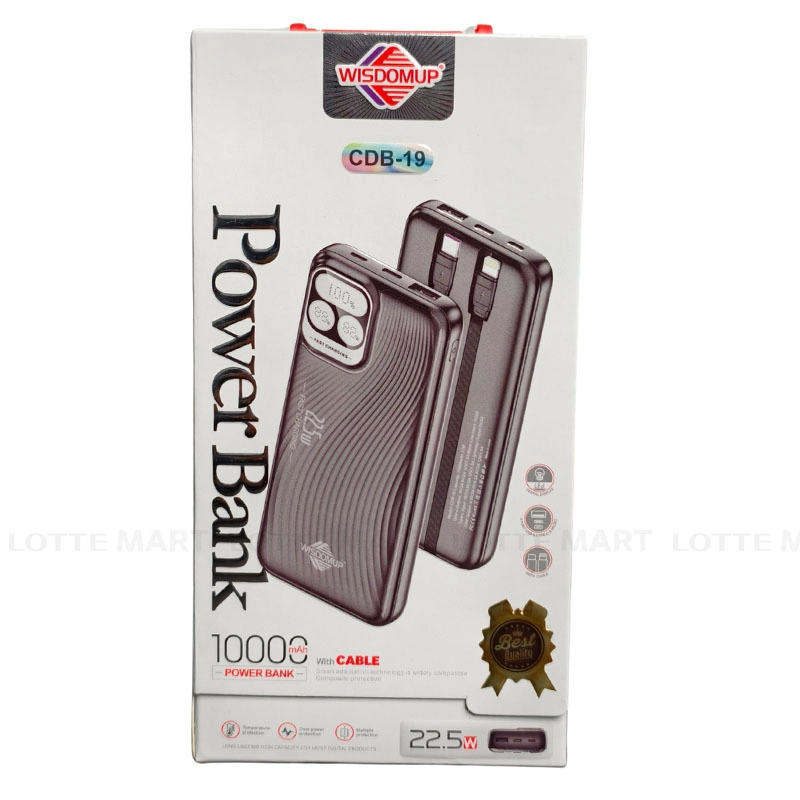 - Pin Sạc Nhanh 3 Hiển Thị WisdomUp 22.5W CDB-19 được thiết kế với 2 dây sạc tích hợp (Type-C và Lightning), giúp sạc tiện lợi mà không cần mang theo cáp rời. Kiểu dáng nhỏ gọn, dễ dàng mang theo khi di chuyển.