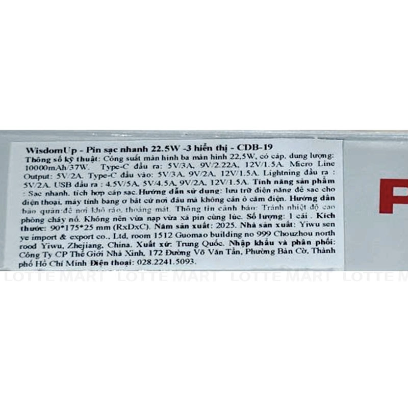 Pin Sạc Nhanh 3 Hiển Thị WisdomUp 22.5W CDB-19