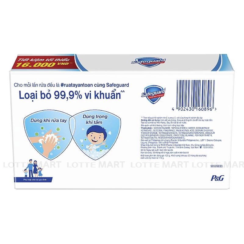 Lốc 3 Xà Bông Cục Safeguard Trắng Tinh Khiết 130G