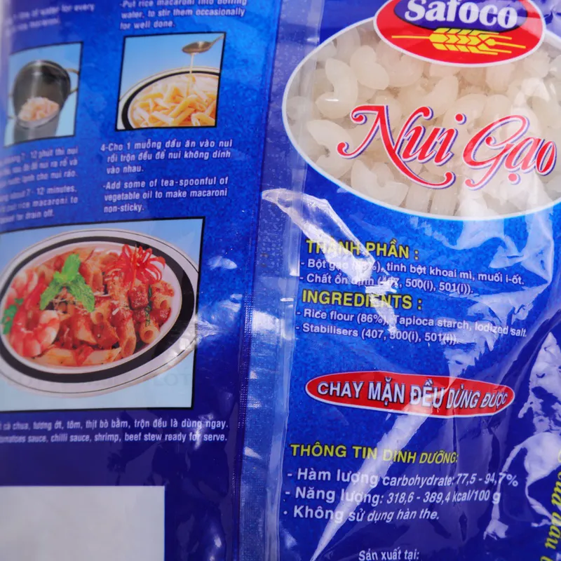 Nui Gạo Safoco Hình Tôm Khô 500g có thành phần chính từ bột gạo được chọn lọc cẩn thận và sản xuất trên dây chuyền hiện đại khép kín, không sử dụng phụ gia độc hại nên tuyệt đối an toàn với sức khỏe người tiêu dùng.