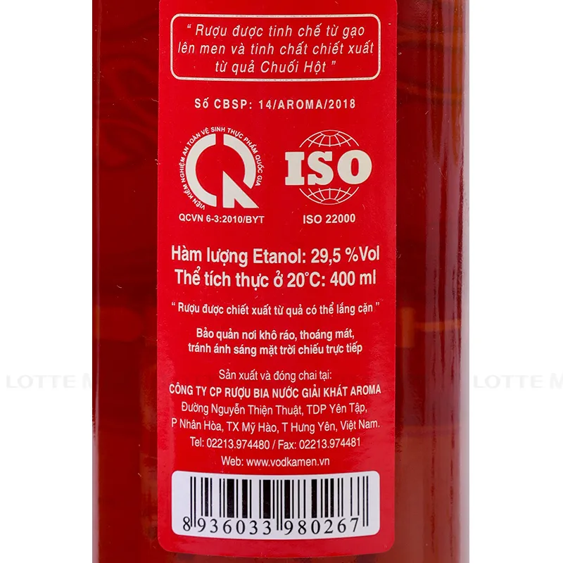 - Được pha chế và lọc lạnh bằng dây chuyền công nghệ Nhật Bản trước khi đóng chai. Rượu có màu nâu nhạt, mùi thơm khói, có vị ngọt nhẹ tự nhiên của chuối hột.