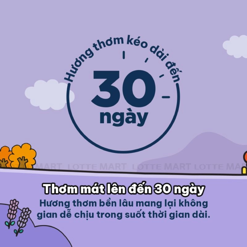 Đặc biệt, hương thơm lưu giữ bền lâu lên đến 30 ngày, cho căn phòng của bạn luôn tràn ngập sự tươi mát và hương thơm dễ chịu suốt thời gian dài.