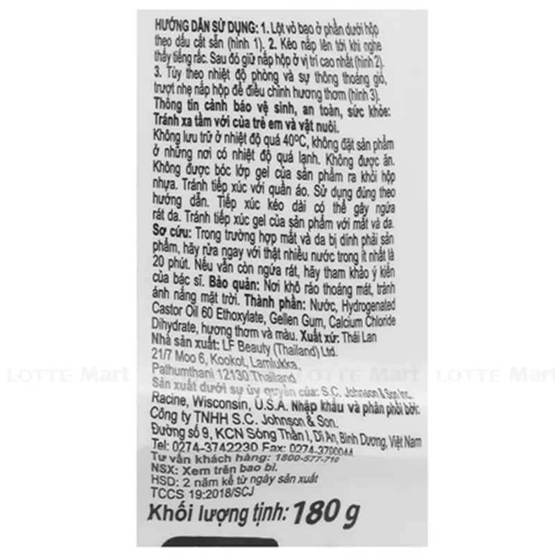 Thành phần: Nước, Hydrogenated Castor Oil 60 Ethoxylate, Gellan Gum, Calcium Chloride Dihydrate, hương thơm và màu.