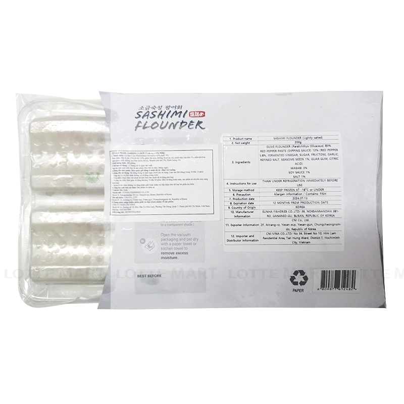 - Sashimi Cá Bơn được cấp đông ngay lập tức nên hương vị của cá bơn, thịt ngọt và dai, tươi ngon, trọn vẹn hương vị biển.