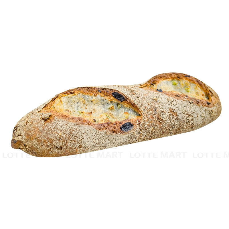 Bánh Mì Ngũ Cốc Bột Nếp với lớp vỏ nâu vàng giòn rụm, được điểm xuyết bởi các loại hạt ngũ cốc như óc chó, nho khô, đậu Hà Lan, bột ngũ cốc hòa quyện.