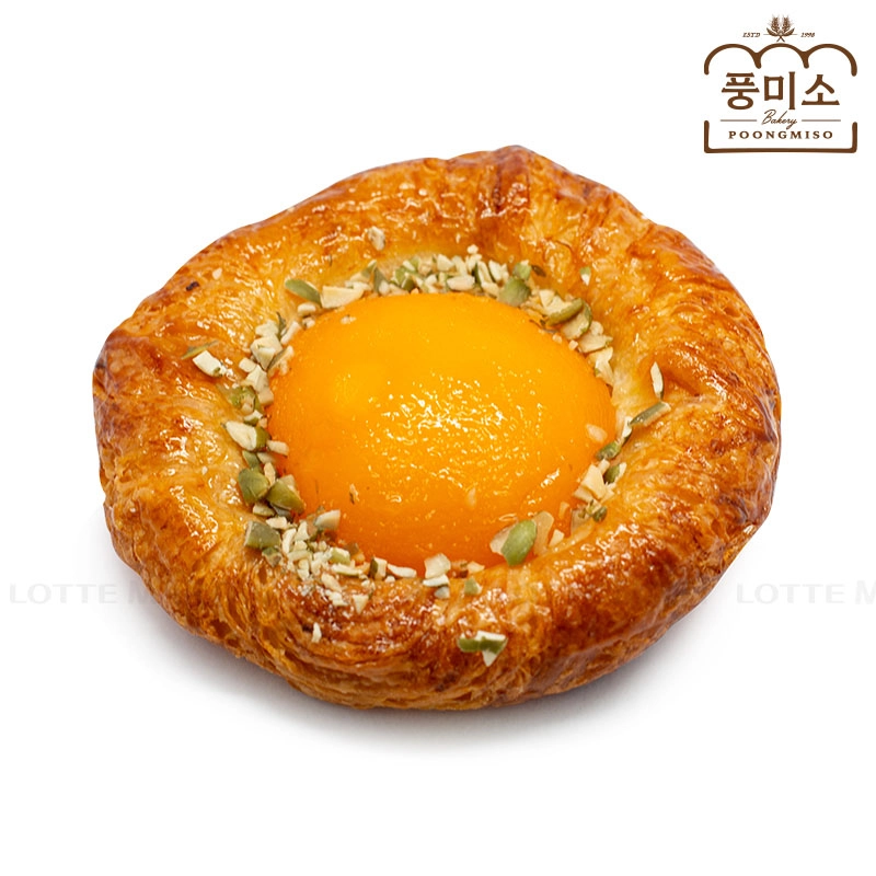 Bánh Pastry Vương Miện Hướng Dương với tạo hình tròn xoe như chiếc vương miện cùng lớp vỏ giòn xốp, nhiều lớp, được nướng vàng óng ả.